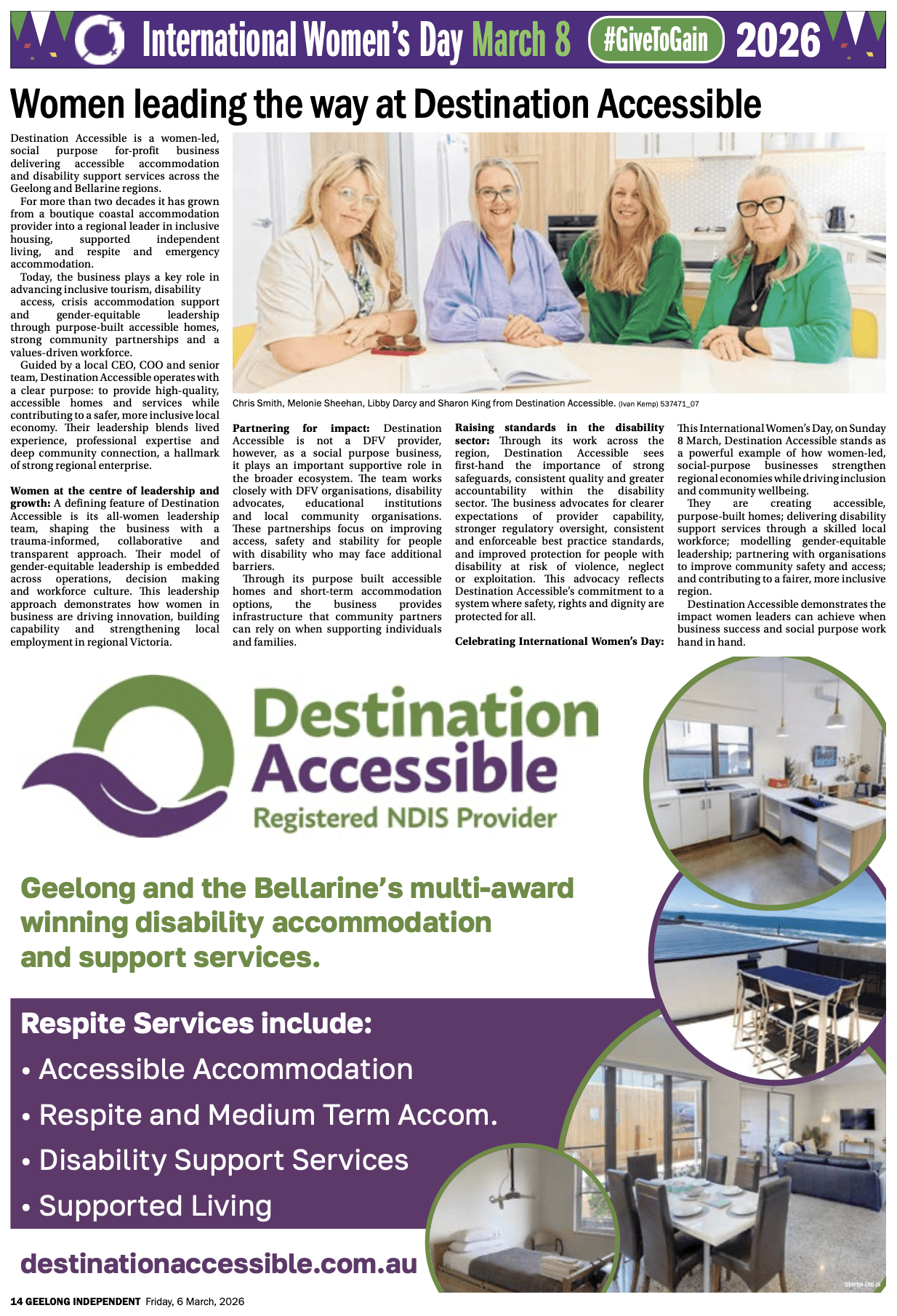 As we celebrate International Women’s Day on 8 March, Destination Accessible proudly recognises the strength, leadership and vision of our all-women management team.